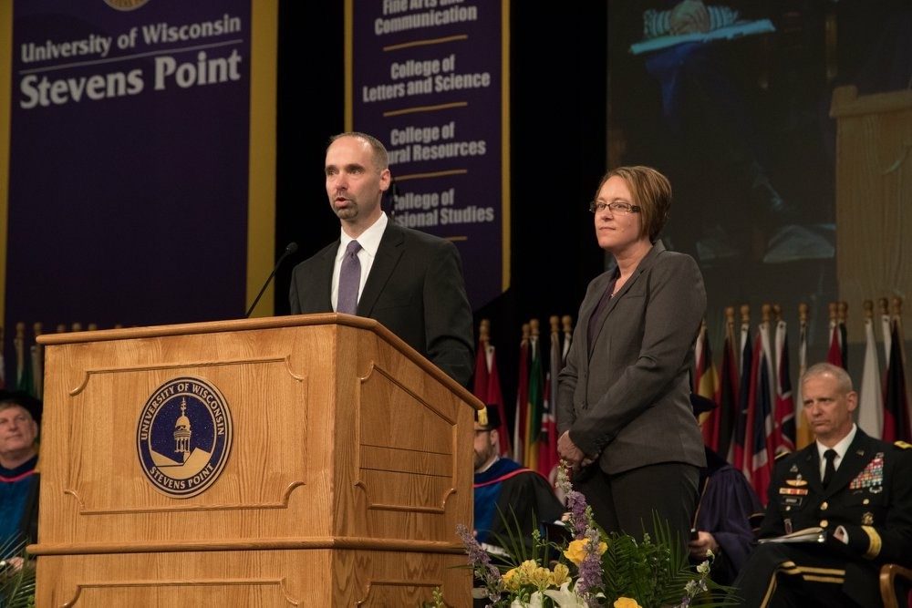 Anderson O'Brien has several University of Wisconsin - Stevens Point alumni, including Attorney Dave James. Dave and his wife Trina recently had the honor of leading the Alumni Pinning Ceremony at one of this year's commencement events. The alumni lapel pin tradition connects UWSP Pointers across generations. At the commencement ceremony, each graduate is given a pin to pass to other Pointers they may meet throughout life. Dave is currently a member of the UWSP Foundation's Board of Directors and currently serves on the Executive Committee as Corporate Counsel.
